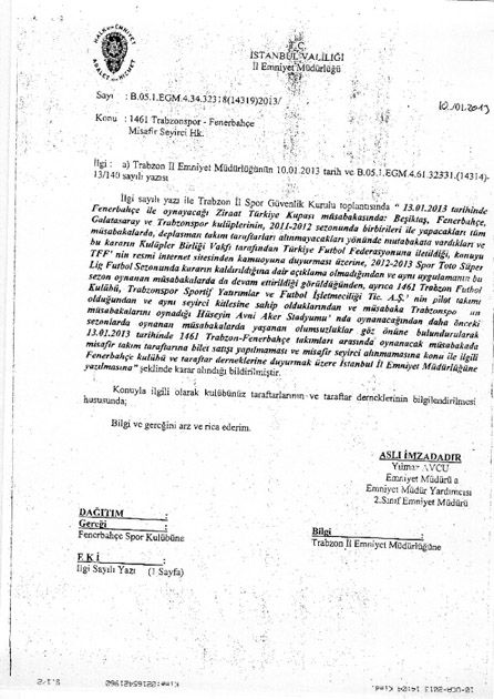 1461 Trabzonspor maci oncesinde Trabzon Emniyeti ve Valilik kanaliyla yapilan muracaatla Fenerbahce taraftarinin Avni Aker Stadi’na gitmesi engellendi. Gerekce olarak da 1461 Trabzon Futbol Kulubu’nun, Trabzonspor’un pilot takimi olmasi ve Trabzonspor ile ayni seyirci kitlesine sahip olmasi gosterildi. Devlet organlari tarafindan yapilan tespitlerin Kuran degerinde kabul edildigi bu gunlerde, yapilan bu tespit beklendigi gibi isin icine ceza girince degerini kaybetti. 1 maclik ceza aslinda Trabzonspor ile hicbir iliskisi olmayan 1461 Trabzon taraftarina kesildi. Madem 1461’in ceza verilebilecek farkli bir taraftar kitlesi vardi Fenerbahce taraftari neden Avni Aker’deki yerini alamadi? 1461 taraftari yine 4 buyuklerden biri olan Galatasaray’in evi TT Arena’ya, Trabzonspor taraftari gidemedigi halde, gitmedi mi? Bu mac Fenerbahce ile degil de Galatasaray ile olsaydi deplasman taraftarini Avni Aker’de gormez miydik? Fenerbahce taraftarini takimindan ayirmak icin atilan taklalar ne zaman son bulacak?